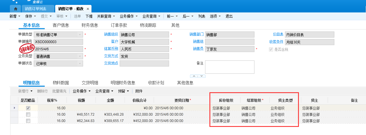 # 封面封底(制作6)副本 **金蝶云销售管理操作手册** # 目录 [1](#_Toc524591354) [目录 2](#_Toc524591355) [1. 销售管理系统 4](#_Toc524591356) [1.1业务流程图 4](#_Toc524591357) [1.1.1 标准销售 4](#_Toc524591358) [1.1.2 跨组织销售 5](#_Toc524591359) [2.基础设置 5](#_Toc524591360) [2.1参数设置(重要) 5](#_Toc524591361) [2.1.1系统参数 5](#_Toc524591362) [2.1.2 单据类型参数 6](#_Toc524591363) [2.2 物料设置(重要) 7](#_Toc524591364) [2.2.1 基本控制 7](#_Toc524591365) [2.2.2 销售控制 7](#_Toc524591366) [2.3 客户资料(重要) 8](#_Toc524591367) [2.3.1 基本信息维护 8](#_Toc524591368) [2.3.2 客户资料分配 9](#_Toc524591369) [2.4 销售员、销售组(重要) 9](#_Toc524591370) [2.5 可销设置(可选) 10](#_Toc524591371) [2.6 客户物料对照表(可选) 10](#_Toc524591372) [2.7 单据类型与业务流程(重要) 11](#_Toc524591373) [3.初始化工作 12](#_Toc524591374) [4.日常业务处理 13](#_Toc524591375) [4.1 销售报价 13](#_Toc524591376) [4.2 销售订单 14](#_Toc524591377) [4.2.1 填制订单 14](#_Toc524591378) [4.2.2交货控制 14](#_Toc524591379) [4.2.3订单预收 14](#_Toc524591380) [4.3 订单变更 15](#_Toc524591381) [4.3.1 销售订单变更单 15](#_Toc524591382) [4.4 发货通知单 15](#_Toc524591383) [4.5 销售出库 16](#_Toc524591384) [4.6 销售退货 16](#_Toc524591385) [4.6.1 根据出库处理退货 16](#_Toc524591386) [4.6.2根据原订单处理退货 17](#_Toc524591387) [4.6.3无源单退货 17](#_Toc524591388) [5.常用功能及业务处理 17](#_Toc524591389) [5.1 销售价格管理 17](#_Toc524591390) [5.2 销售折扣管理 17](#_Toc524591391) [5.3 销售锁库与预留 18](#_Toc524591392) [5.4 跨组织销售 18](#_Toc524591393) [5.5 寄售业务 18](#_Toc524591394) [5.6 客户多方交易 19](#_Toc524591395) [5.7 服务类物料销售 20](#_Toc524591396) [6.报表查询 20](#_Toc524591397) [6.1 销售订单执行明细表 20](#_Toc524591398) [6.2 销售订单执行汇总表 20](#_Toc524591399) [6.3 销售毛利润表 21](#_Toc524591400) [6.4 销售排名表 21](#_Toc524591401) # 1. 销售管理系统 ## 1.1业务流程图 ### 1.1.1 标准销售  ### 1.1.2 跨组织销售  # 2.基础设置 ## 2.1参数设置 ### 2.1.1系统参数 与WISE不同,Cloud的参数设置有多个层级:数据中心层级、业务组织层级、单据层级。销售管理的系统参数在功能菜单的销售管理下可以查询和修改,也可以由系统管理员统一维护管理,用系统管理员登录,在系统参数下进行维护。 如果企业用户存在多个销售组织,那么可以为不同销售组织设定不同的系统控制参数、价格控制参数。  ### 2.1.2 单据类型参数 单据类型上也有相应的控制参数,主要作用是,不同单据类型可以实现不同的业务控制。参考图片如下:  ## 2.2 物料设置 ### 2.2.1 基本控制 物料控制跟WISE不同,在物料控制上,只有允许销售的物料,才允许在销售管理的业务单据上应用;只有允许库存的物料,才允许在库存类单据(如销售出库单、销售退货单)上应用。没有勾选允许销售的物料,在销售订单等单据上是选不到的。  ### 2.2.2 销售控制 物料的销售页签,控制与销售业务相关的数据。如计量单位、超发上下限等。Cloud系统中将销售计价单位与销售单位区分,有别于WISE系统,这样设计更符合企业的实际。销售计价单位即是用于物料、商品定价的单位。在业务单据中系统自动取价时,会根据销售单位和计价单位进行自动换算。  ## 2.3 客户资料 ### 2.3.1 基本信息维护 维护客户的基本信息,与客户交易时的结算方式、收款条件等;设置客户默认对应的销售人员、价目表、折扣表等。维护好这些基本信息系统会在单据上自动携带,可以节省录单时间。 客户资料上组织信息页签的地点、地址信息,是指客户企业存在多组织机构时,这些组织机构作为收货地点信息。如果要区分客户企业下,不同组织机构,都分别与企业发生销售业务时,则需要分别设置成不同的客户资料,再在客户资料上指定集团企业是谁。这样系统就能在业务环节反应和控制该集团客户的销售业务和信用。  ### 2.3.2 客户资料分配 客户资料维护好之后,需要审核后才能在系统中使用。如果用户企业存在多个销售组织,不同销售组织共享客户资源时;可以由上级组织建立统一的客户资料,再将客户资料分配给各使用组织。分配的客户资料可以设置是否可以修改,客户资料分配后也需要审核才能使用。  ## 2.4 销售员、销售组 使用销售管理的单据,要先定义好销售员等资料,以便在录单时能快速找到销售员和方便报表统计查询。在菜单基础资料的业务员中,选择业务员类型为销售员。设置销售组织下的职员作为销售员,销售员在填制业务单据,已经可销控制、价格资料等地方都有应用。 也可以按照业务分工,在销售组织下划分销售小组。这一点是WISE没有的功能。不同的销售组处理的业务可以是有差异的,系统支持销售组数据的隔离。也就是说,业务员在同一个销售组内,则组内的单据可以查询,其他销售组的销售数据则无权限进行查询。   ## 2.5 可销设置 在系统中应用可销控制的3个步骤是:设置可销控制参数->维护可销范围->录单时系统自动进行可销控制(即业务单据上只能录入和查询到可销范围内的物料或客户)。  ## 2.6 客户物料对照表 在系统中应用客户物料对照表,需要先启用系统参数:启用客户物料对照表,销售系统业务单据上会支持客户物料编码、名称的维护;然后在客户物料对照表资料中进行设置和维护。 系统支持多个客户物料编码对应企业一个物料编码。   ## 2.7 
